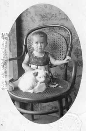 s. n. & s. n. (1943). La niña Libia Uribe con su mascota & 602947. CANDELARIA: Biblioteca Departamental Jorge Garces Borrero.