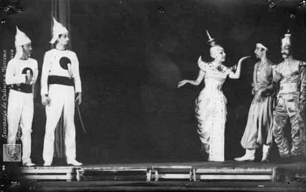 s. n. & s. n. (1965). Iván Montoya, Danilo Tenorio y Jorge Herrera en la obra "El espantapájaros que quería ser Rey" de A & 501739. OTRO: Biblioteca Departamental Jorge Garces Borrero.