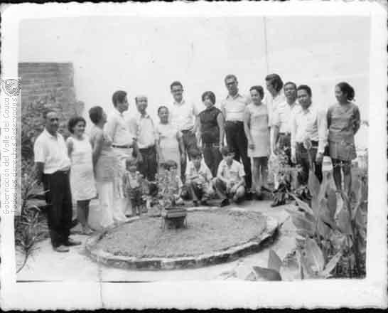 Reunión de amigos: Francisco Vanegas, Isabel Vásquez, Elvira López, Amilkar Gutierrez, Francisco Vanegas, Josefa Vanegas, Pbo. Alfonso Rojas, Alba López, José Soto, Carlos Arturo Giraldo, entre otras personas por identificar. Obando. 1970