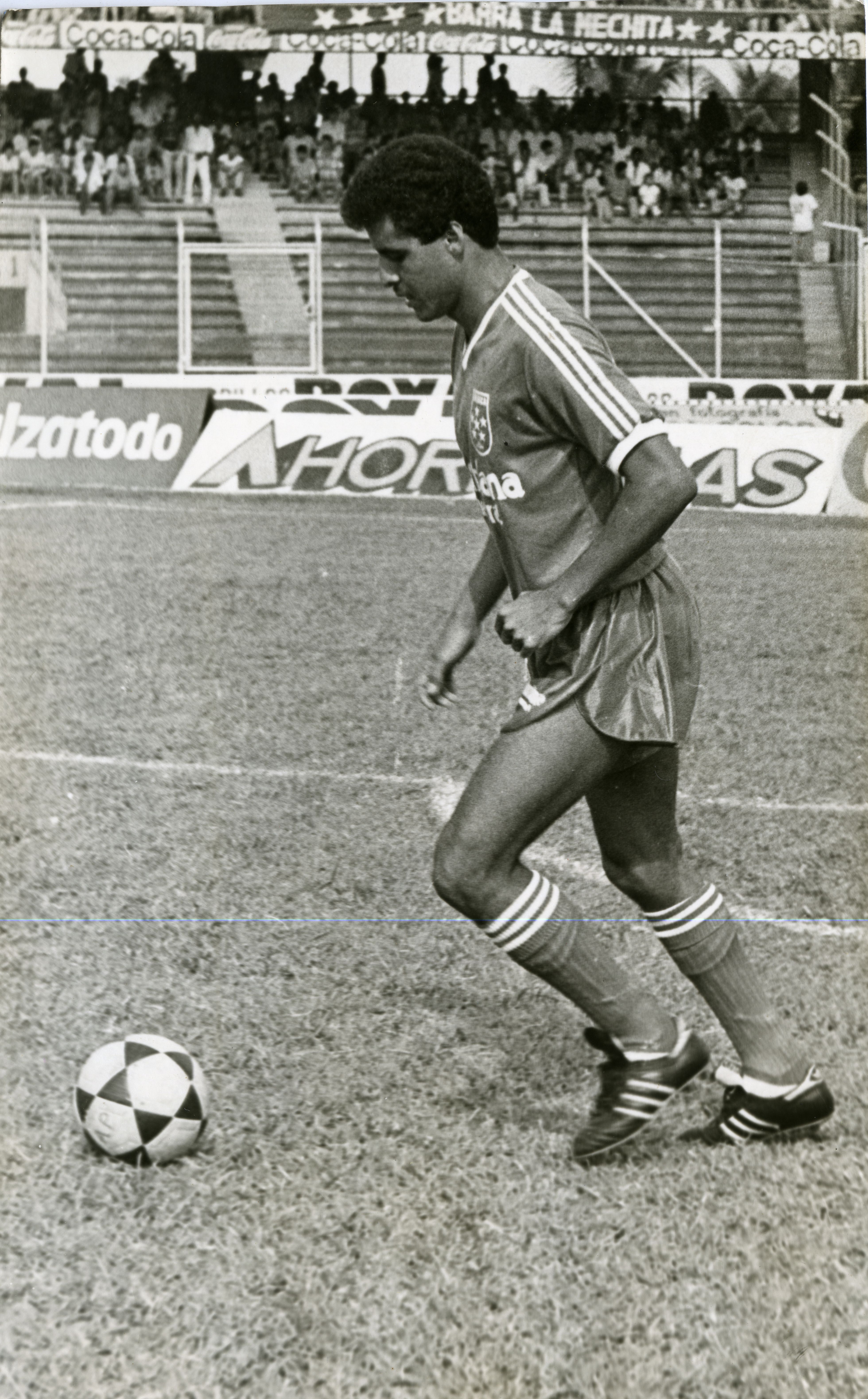 Alexis Mendoza, Barranquilla, Atlántico, 8 de noviembre de 1961, es un exfutbolista y entrenador colombiano. Fue jugador del América de Cali, en 1990 - 1992. La sapiencia de Alexis Mendoza jugador del América de Cali. Estadio Olímpico Pascual Guerrero. Se aprecia al jugador con la posesión del balón