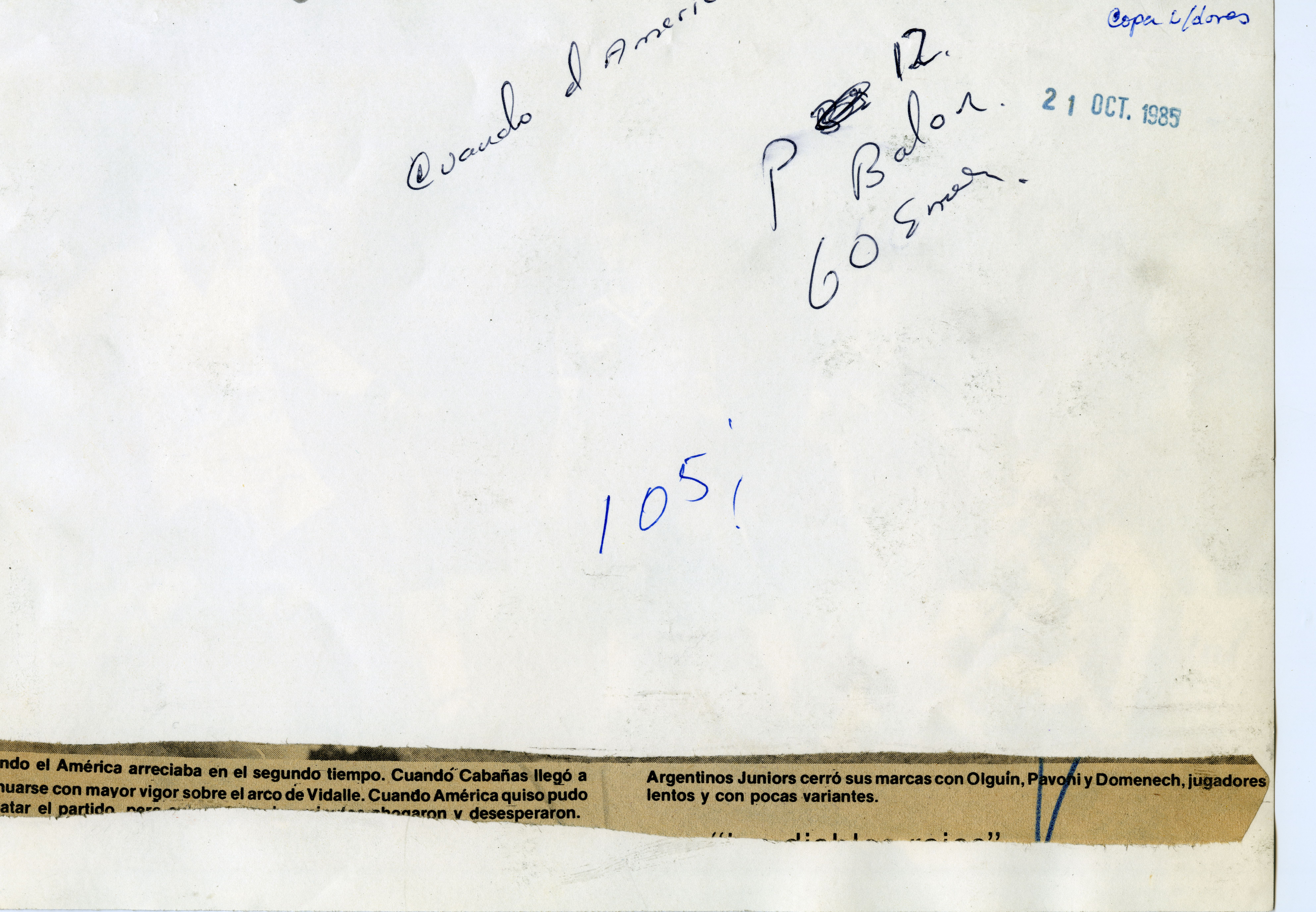 | dc.description.abstract | Reverso: Cuando el América arreciaba en el segundo tiempo. Cabañas llegó a insinuarse con mayor vigor sobre el arco de Vidalle. América quiso pero no pudo empatar el partido. Argentino Juniors cerro sus marcas con Olguín, Pavoni y Domenech, jugadores lentos y con pocas variantes | spa |