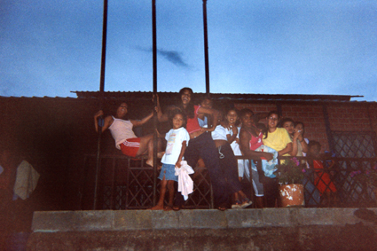 Guevara Osorio, S. (2005). Sobre una terraza de un segundo piso varios jóvenes se exhiben a cámara, alegres y en camaradería. Santiago de Cali: Biblioteca Departamental Jorge Garces Borrero.