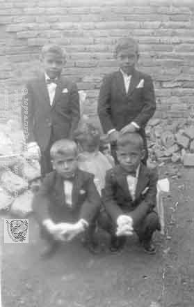 Los hermanos Oscar, Jairo, Raúl y Reinaldo Londoño, en el patío de la casa, el día de su primera comunión