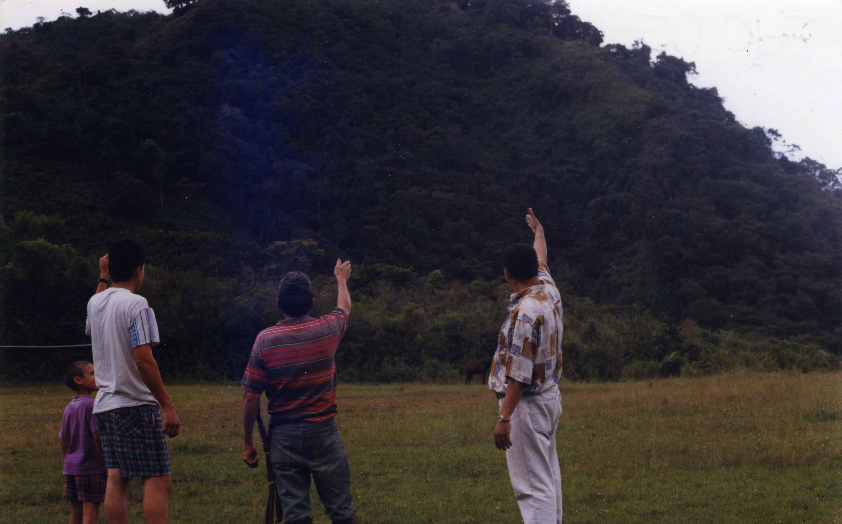 En el pie de foto dice lo siguiente: Reforestación de la zona rural de Moralia, campesinos de la región señalan un ecosistema boscoso que requiere del seguimiento y control de la CVC.- El Archivo del Patrimonio Fotográfico y Fílmico del Valle del Cauca es responsabilidad de la Biblioteca Departamental del Valle Jorge Garcés Borrero, por convenio de cooperación suscrito con la Secretaria del Cultura Departamental, con el fin de aunar esfuerzos para su conservación, preservación y divulgación del Archivo entre la comunidad Vallecaucana, especialmente entre los estudiantes e investigadores que visitan la Biblioteca, propiciando el su uso y consulta permanente. La universidad Icesi es un colaborador en el proceso de difusión, facilitando la tecnología que permite la consulta de las imágenes.