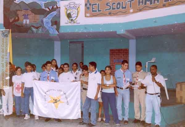 Grupo de jóvenes scout integrantes del Comité ambiental "Los Arrayanes". Zarzal, 1999.