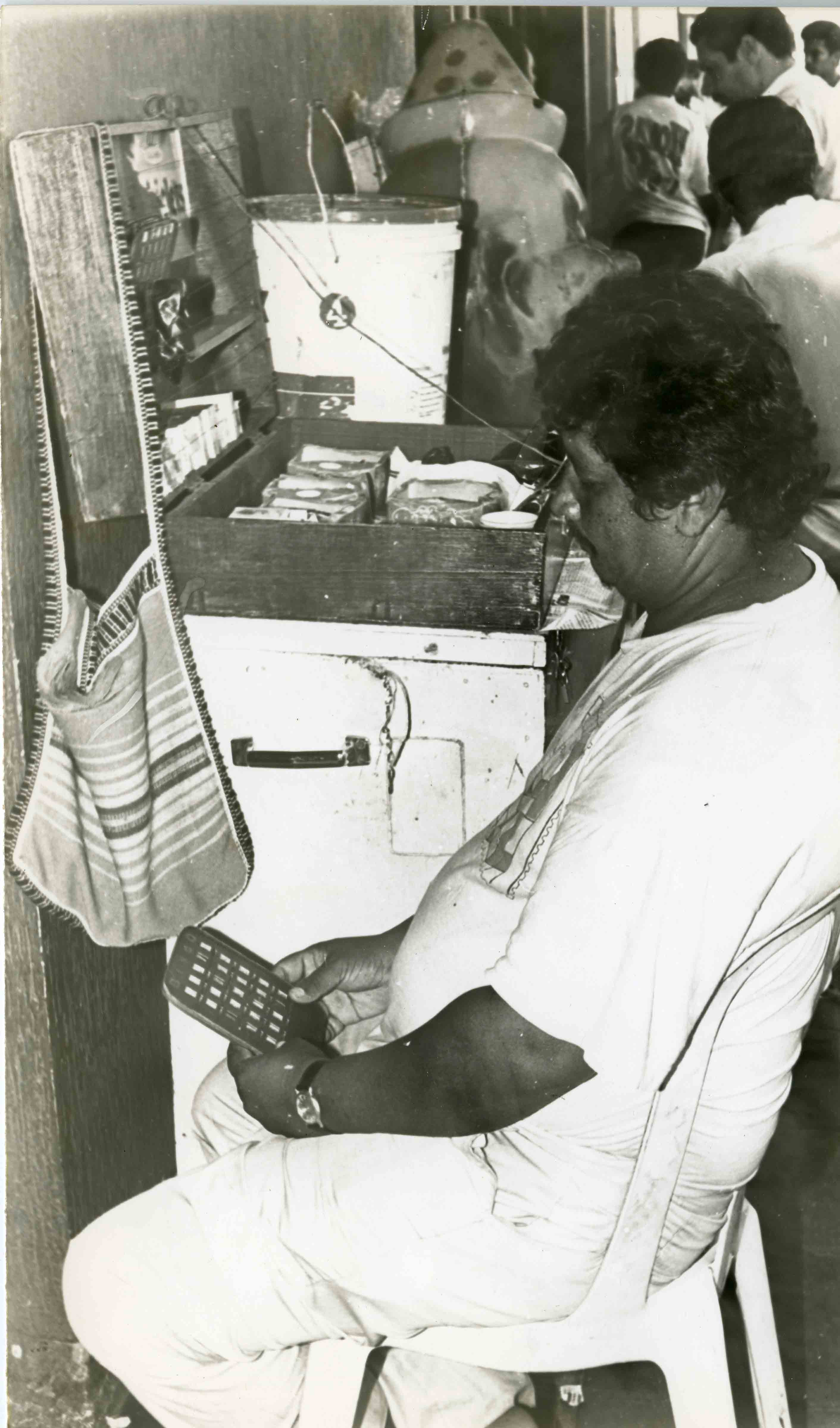 Este vendedor situado frente a la sede de Bingo Social, en plena calle, sigue las incidencias de juego sin descuidar su negocio de dulces. El Archivo del Patrimonio Fotográfico y Fílmico del Valle del Cauca es responsabilidad de la Biblioteca Departamental del Valle Jorge Garcés Borrero, por convenio de cooperación suscrito con la Secretaria del Cultura Departamental, con el fin de aunar esfuerzos para su conservación, preservación y divulgación del Archivo entre la comunidad Vallecaucana, especialmente entre los estudiantes e investigadores que visitan la Biblioteca, propiciando el su uso y consulta permanente. La universidad Icesi es un colaborador en el proceso de difusión, facilitando la tecnología que permite la consulta de las imágenes.