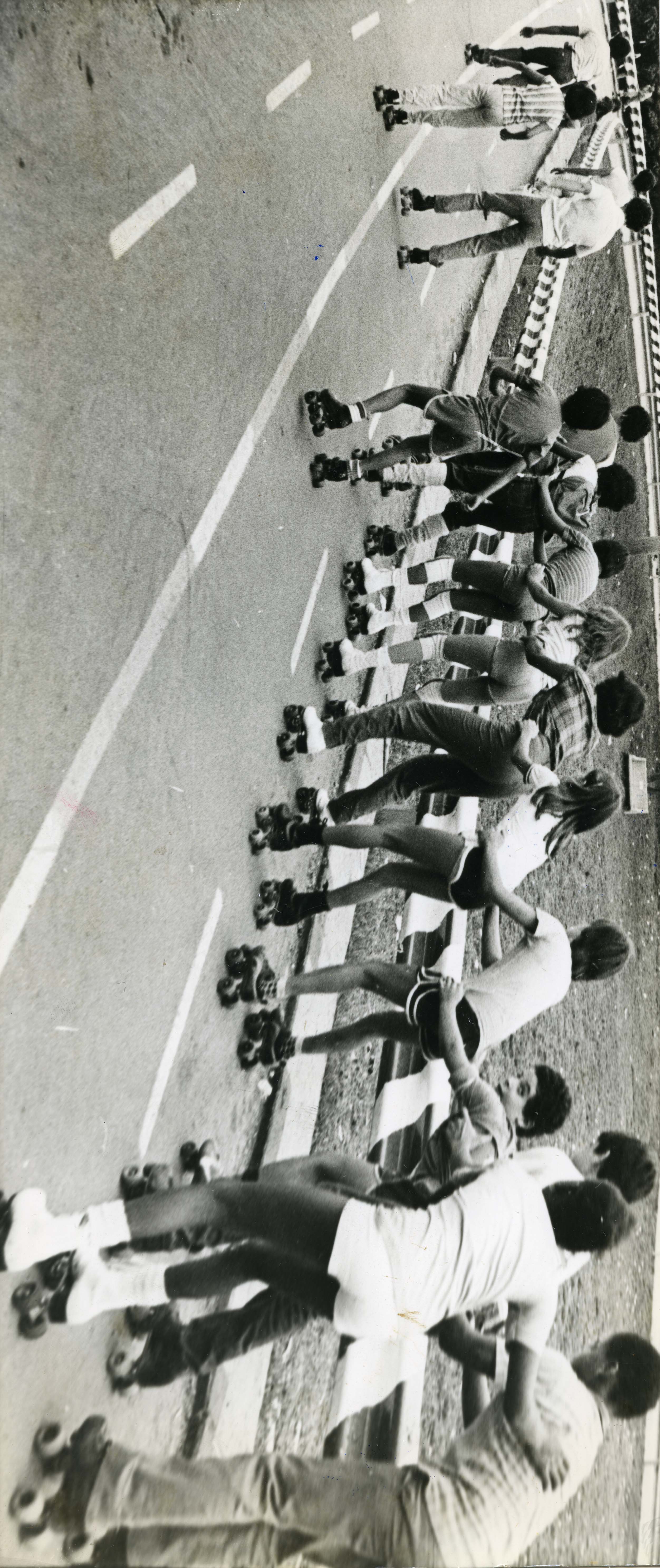 Aspecto del patinodromo de Cali, observamos una practica de patinadores niños.