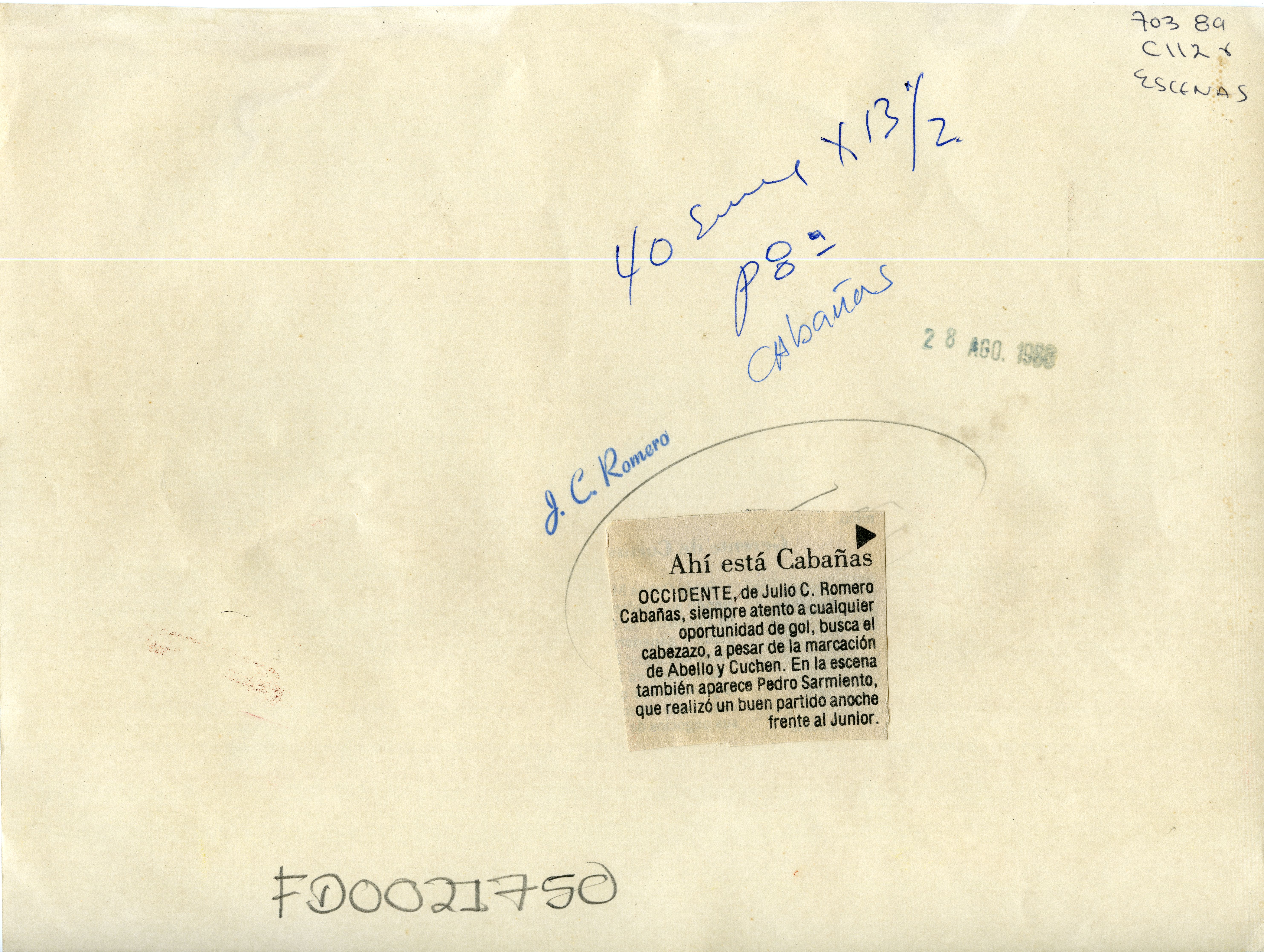 Reverso: Ahí está Cabañas. Occidente, de Julio C. Romero. Cabañas, siempre atento a cualquier oportunidad de gol, busca el cabezazo, a pesar de la marcación de Abello y Kuchen. En la escena también aparece Pedro Sarmiento, que realizó un buen partido anoche frente al Junior