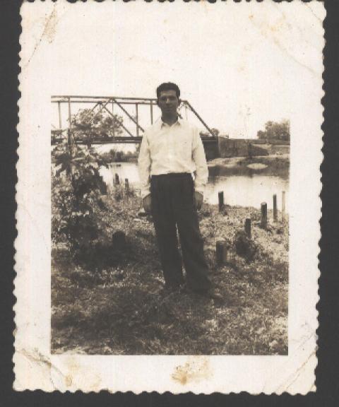Riofrío, Valle del Cauca. Fundado en 1567, por Pedro Marmolejo. Nombres: Santa María Magdalena de Riofrío, Palomino, Higuerón. Municipio desde 1923. Economía importante en Agricultura, Caficultura, Silvicultura, Caña de Azúcar, entre otros. Atractivo turístico: Plaza Principal, Río Riofrío, Reserva Ecológica Fedena, Ferias y Fiestas. Observamos en la imagen, Tulio Enrique Holguín en orillas del Río Cauca. Apreciamos el puente y la naturaleza