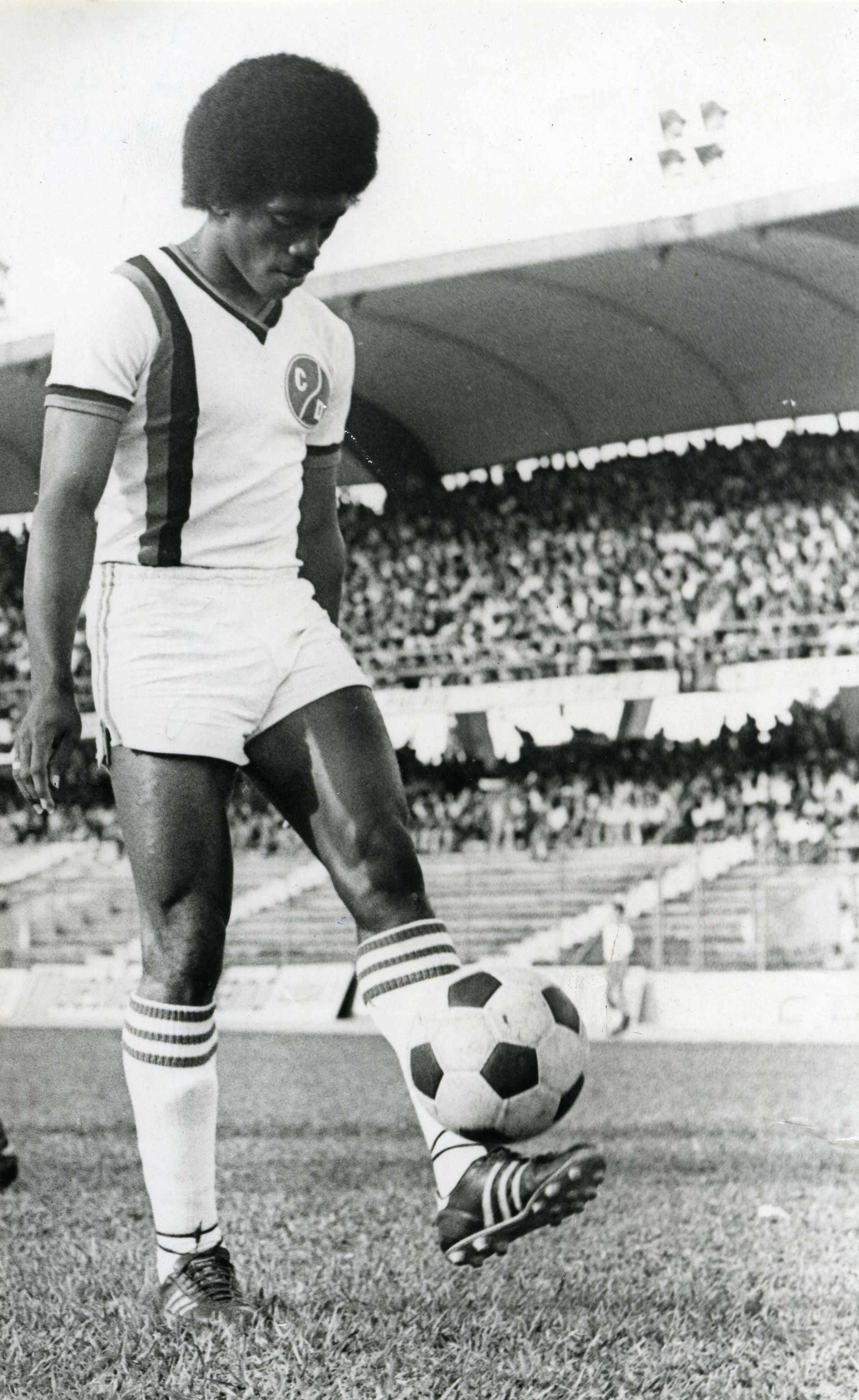 Arnoldo Iguarán, conocido popularmente como "El Guajiro" fue futbolista de la Selección Colombia, donde por muchos años fue el goleador del equipo con 24 goles. Tuvo una participación mundialista en Italia en 1990 y fue jugador de la selección hasta el año 1993. Su mayor reconocimiento como jugador y goleador colombiano lo logró en el Club los Millonarios de la ciudad de Bogotá, donde es considerado uno de sus mayores ídolos anotando con el equipo en todas sus temporadas 123 goles. Se observa al jugador Iguarán en jugada de fútbol haciendo la 21 con el balón