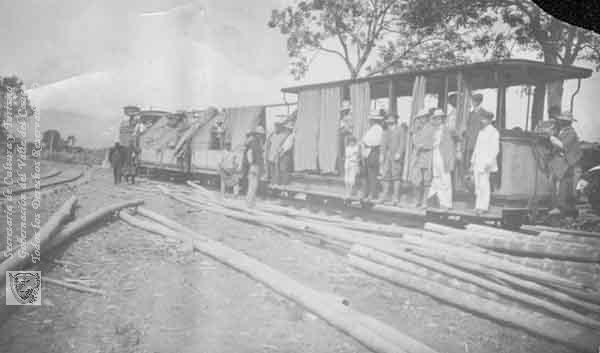 Los trabajadores de la madera abordan el tranvía. Santiago de Cali, 1910.