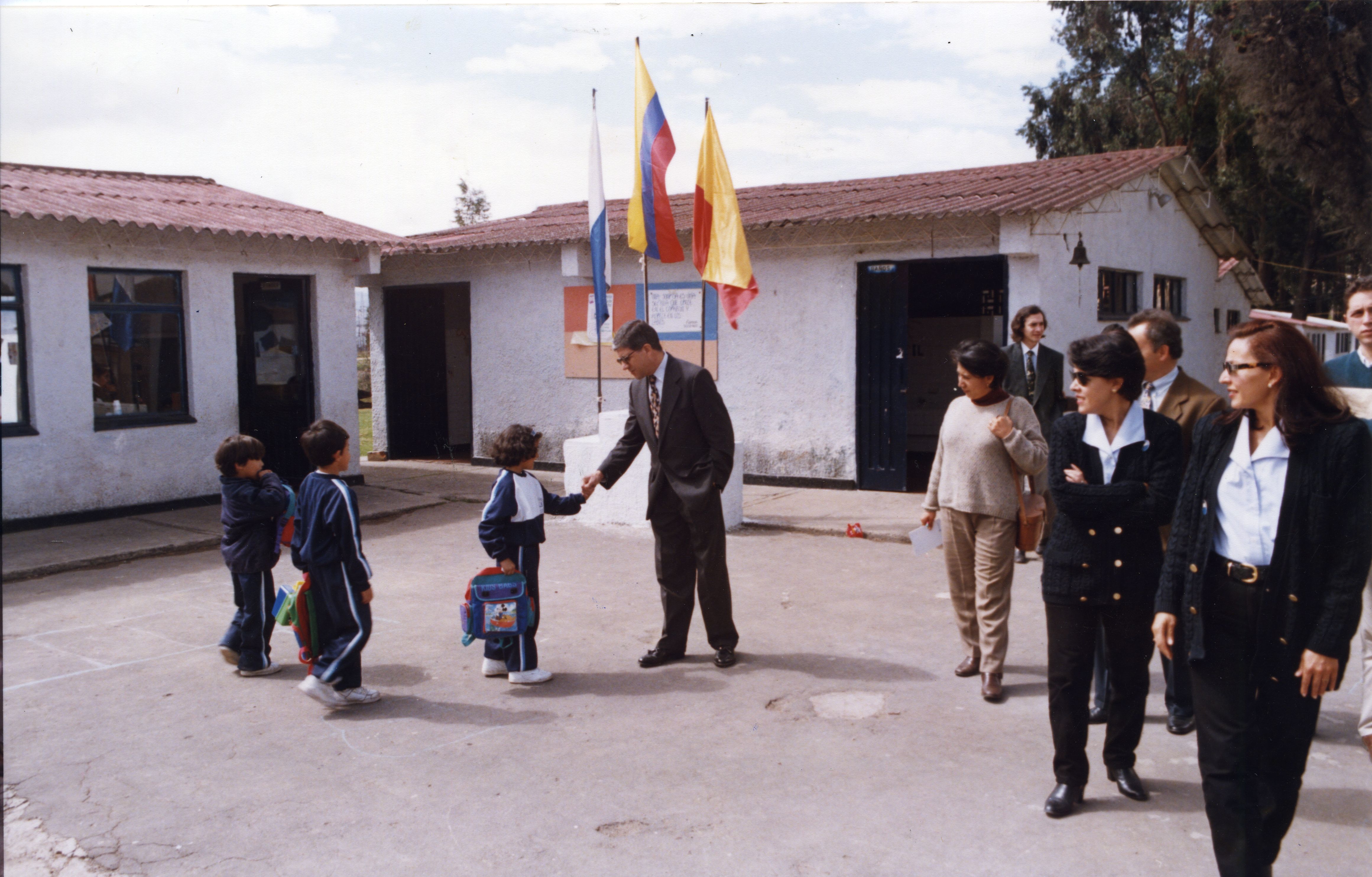 | dc.description.abstract | El gerente general de IBM Colombia, Hernán Burbano de Lara, saluda a una pequeña en la Escuela Libertad, en Bogotá, centro educativo que persiste gracias al respaldo de esta multinacional. El plan escolar se financia desde hace 34 años. Cuenta con 20 computadores y profesorado capacitado por esa empresa | spa |