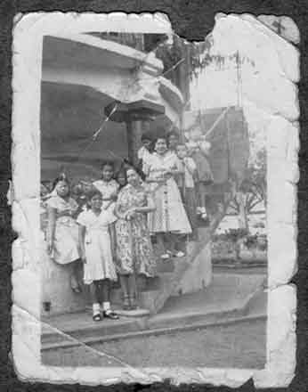 La señora Sofía reyes con sus hijos, pasean por el parque de la Retreta. Yumbo, 1953