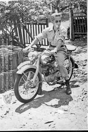 Alfredo Cabal B, posaba para una foto en su moto. Santiago de Cali, 1950.