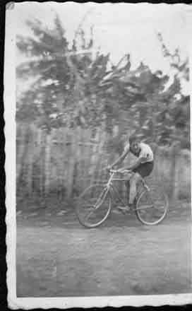 El ciclista Elías Londoño Londoño entrenando en las calles de La Cumbre, 1945.