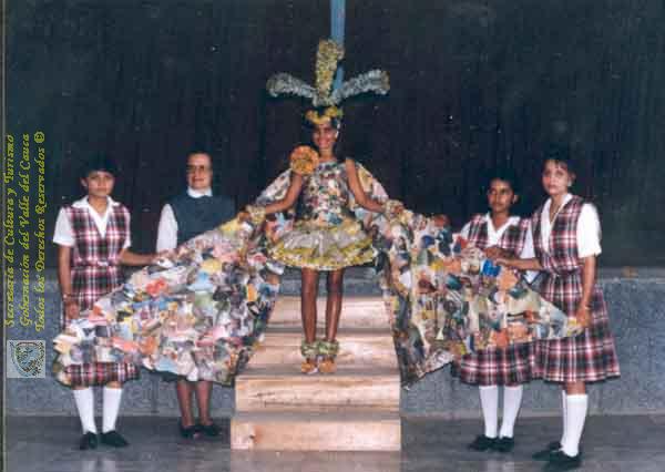 LUIS GONZALES (1989). Luciendo traje en papel periodico para evento escolar & 100774. TORO: Biblioteca Departamental Jorge Garces Borrero.