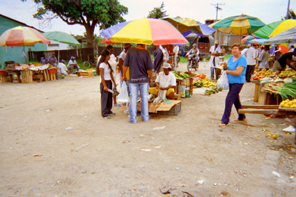 Mercado ambulante instalado en un terreno destapado