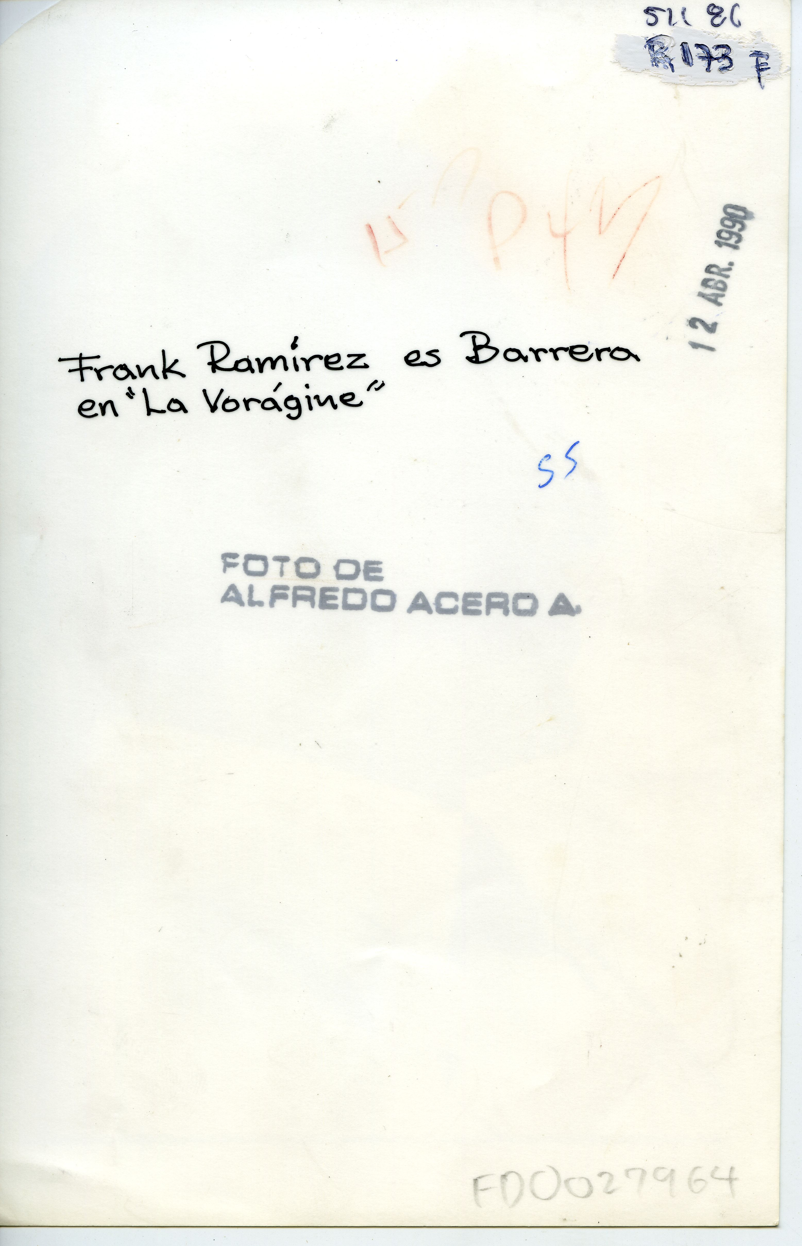 Fotografía en primer Plano del actor Frank Ramírez como ''Narciso Barrera'' en la novela ''La vorágine''