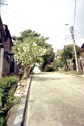 Ramirez Parra, H. (2005). Se observa una calle de barrio con pendiente. Santiago de Cali: Biblioteca Departamental Jorge Garces Borrero.