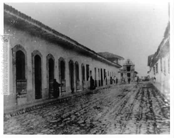 Carrera 14 con calles 5 y 6 de Buga, podemos notar la ausencia de pavimentación de la ciudad. 1904.