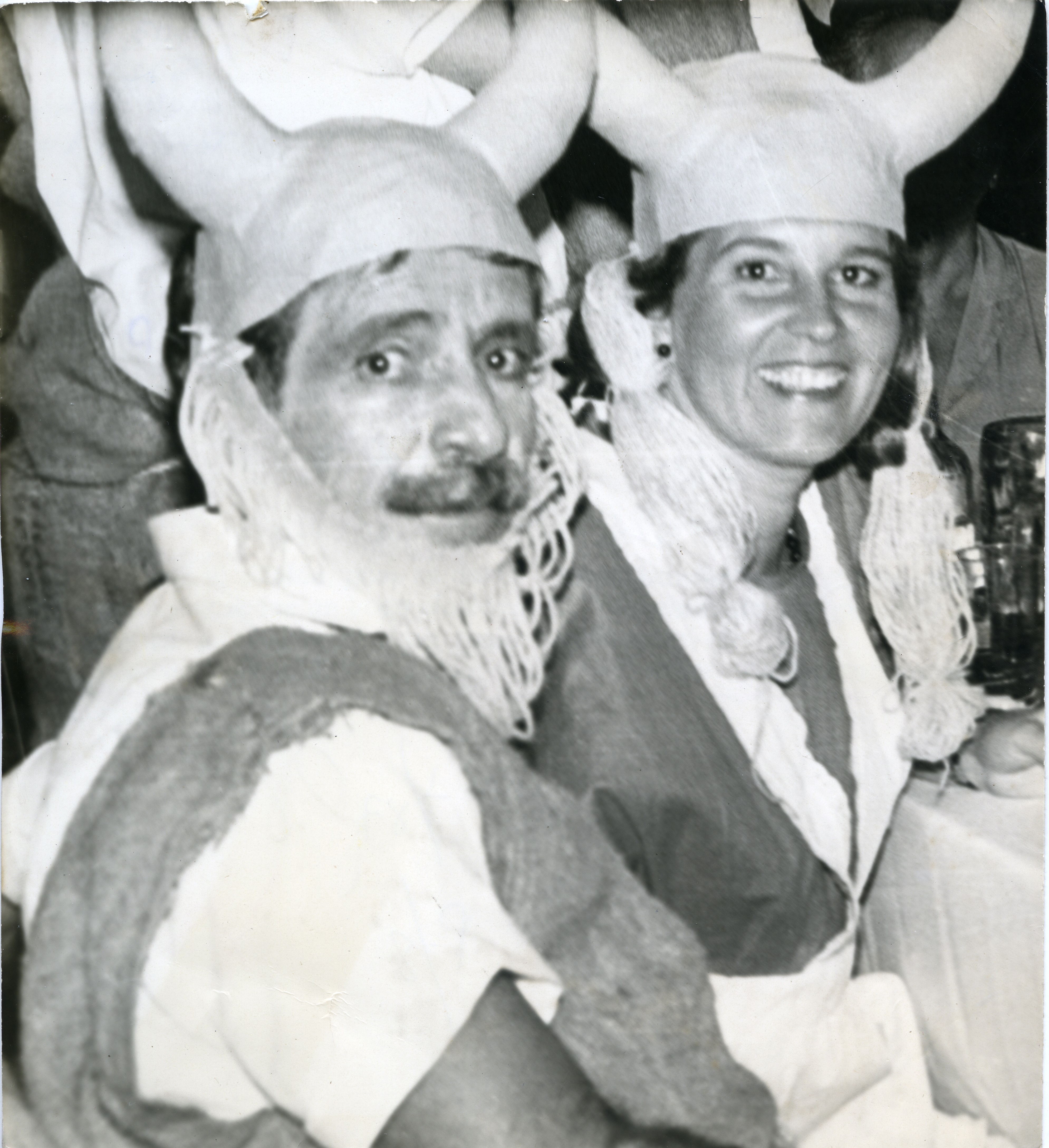 Pareja de esposos disfrazados aparentemente de vikingos durante fiesta de disfraces en el Club San Fernando.