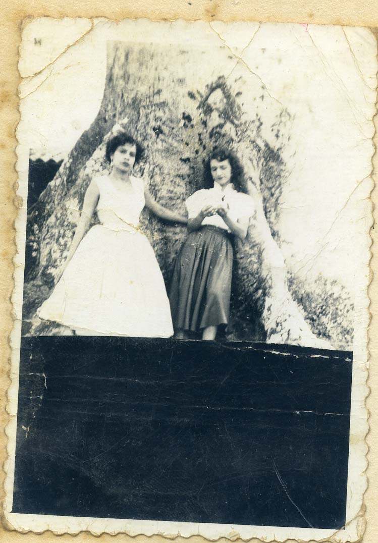 Profesora Cecilia Velásquez y Blanca Gómez en la antigua ceiba de Ansermanuevo