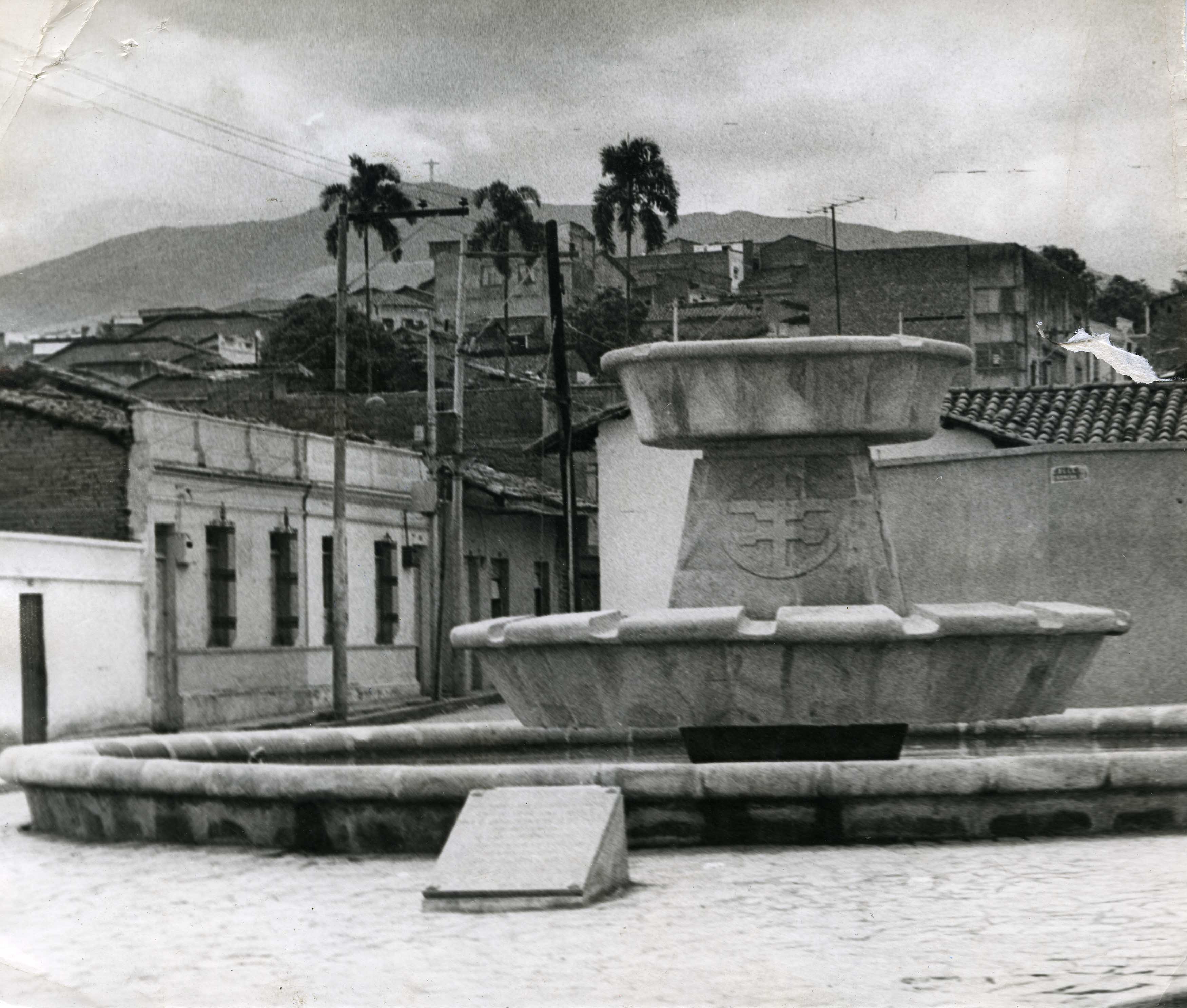 Pila del crespo vacia. Al fondo viviendas del barrio San Antonio y el cerro de Cristo Rey. El Archivo del Patrimonio Fotográfico y Fílmico del Valle del Cauca es responsabilidad de la Biblioteca Departamental del Valle Jorge Garcés Borrero, por convenio de cooperación suscrito con la Secretaria del Cultura Departamental, con el fin de aunar esfuerzos para su conservación, preservación y divulgación del Archivo entre la comunidad Vallecaucana, especialmente entre los estudiantes e investigadores que visitan la Biblioteca, propiciando el su uso y consulta permanente. La universidad Icesi es un colaborador en el proceso de difusión, facilitando la tecnología que permite la consulta de las imágenes.