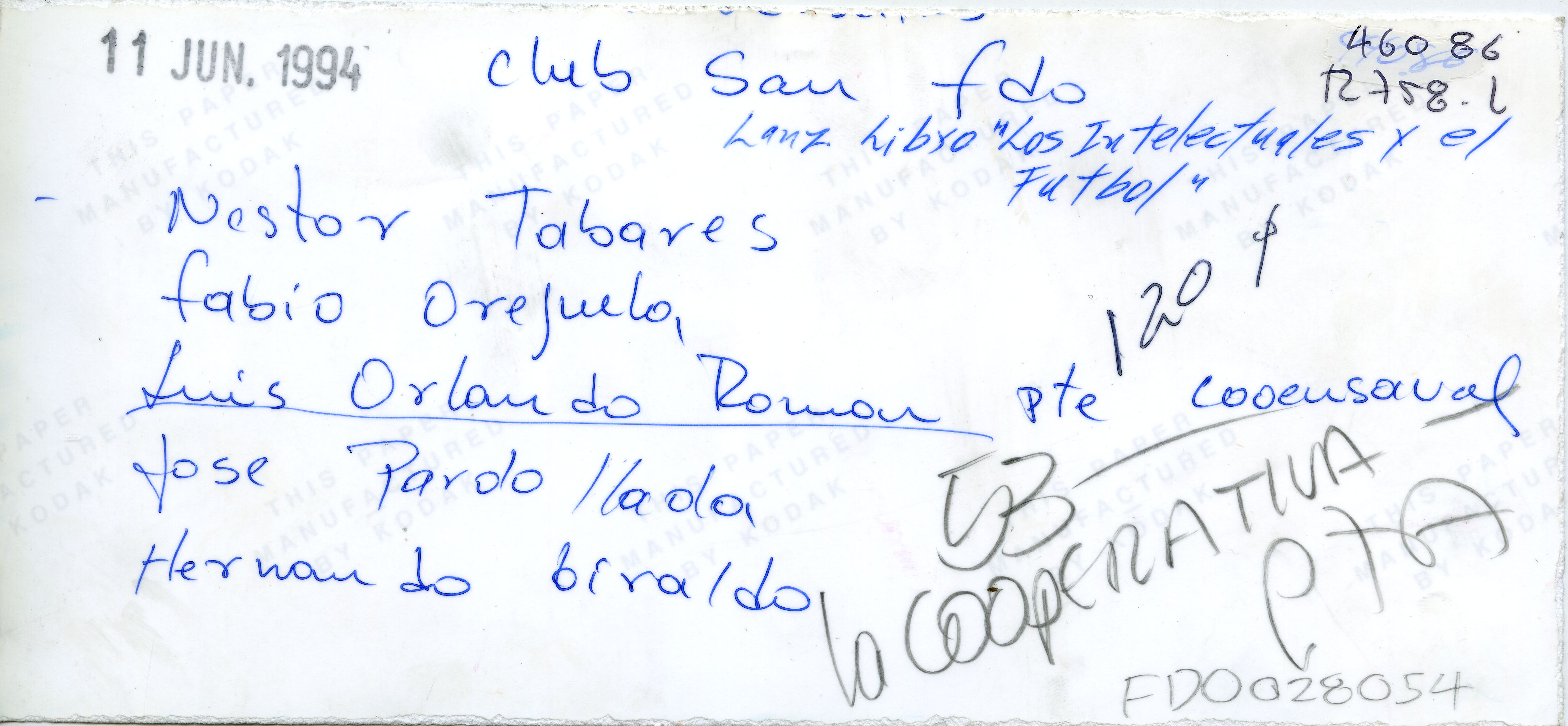 | dc.description.abstract | En la Gráfica se observa a los funcionarios Nestor Tabares, Fabio Orejuelo, Luis Orlando Román, José Pardo Llada, Hernando Giraldo en el Club San Fernando | spa |