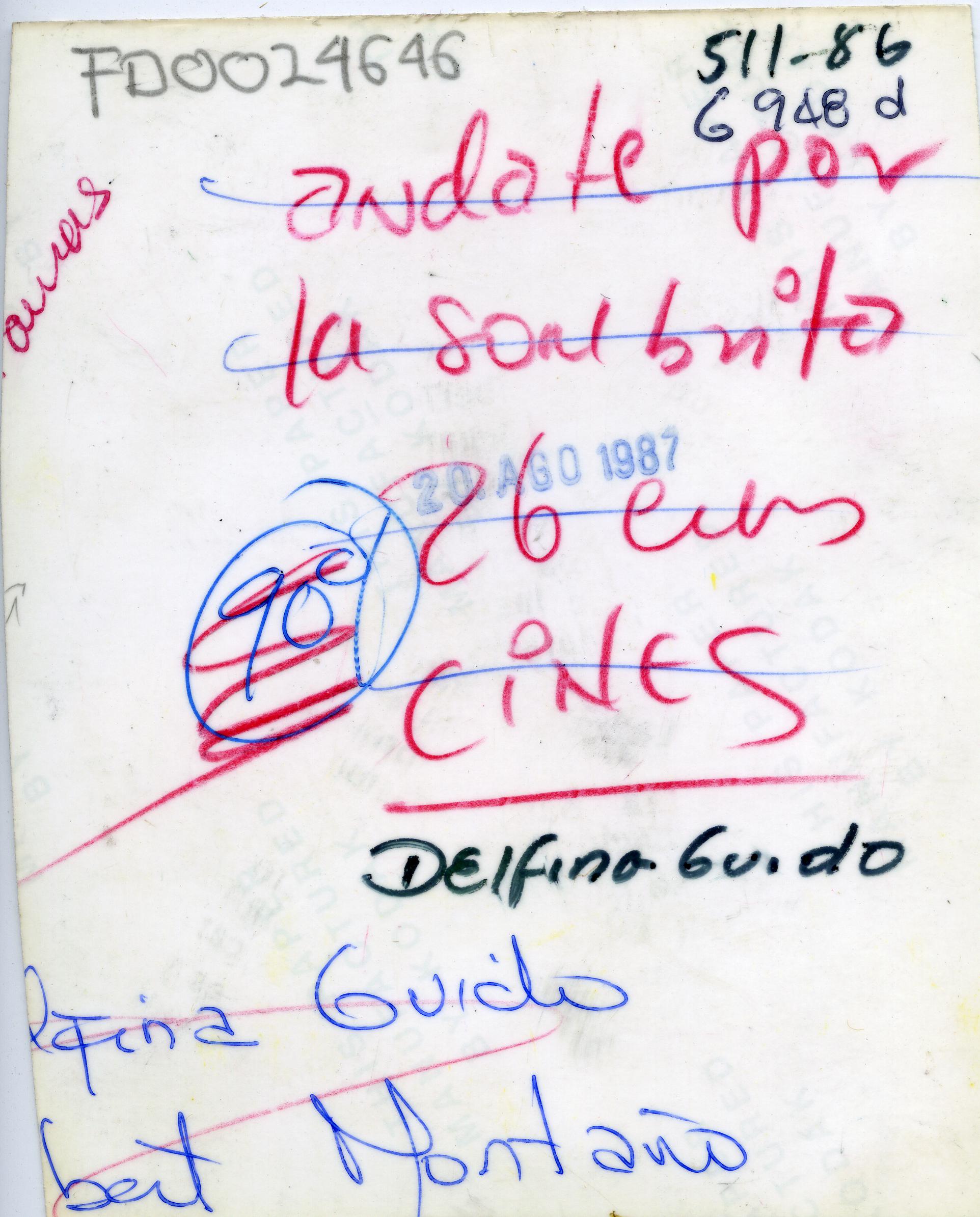 Margarita Beatriz María Felletti García Alonso Cobas, conocida con el nombre artístico de Delfina Guido, Buenos Aires, 19 de julio de 1937, Bogotá, 17 de abril de 2002. Se aprecia retrato