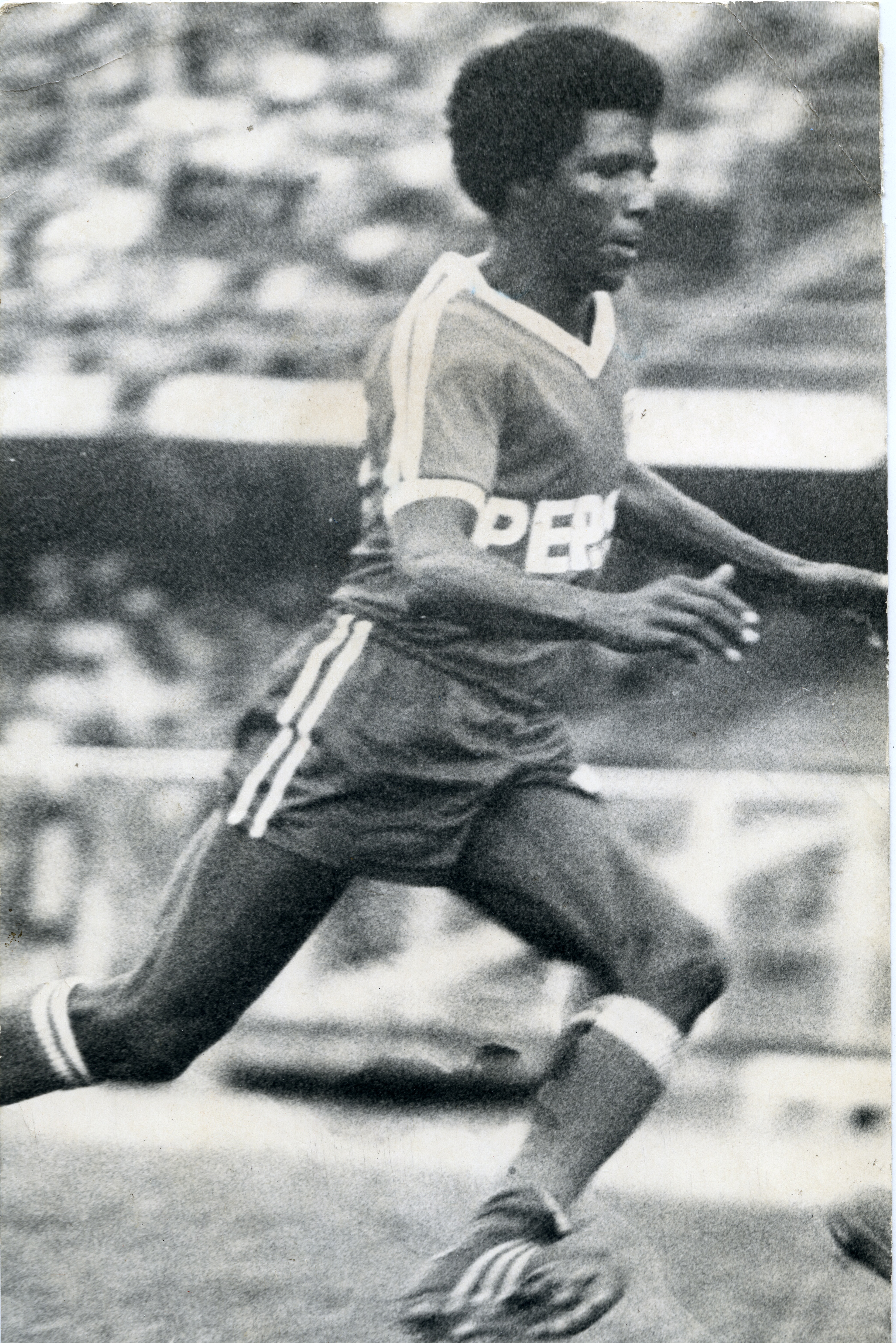 Víctor Jesús Lugo Ortiz, Robles, Jamundí, Valle. Jugador de fútbol del América de Cali. Fue conocido como el “fabricador de penales”, por la cantidad de este tipo de faltas que le pitaron a su favor, durante su carrera deportiva. Anotó 76 goles con el equipo, incluyendo el segundo tanto que le daría a la institución su primer título, en 1979. Participó también en la Selección Jamundí, Selección Valle, Selección Colombia. Observamos a Lugo portando la camiseta de Pepsi