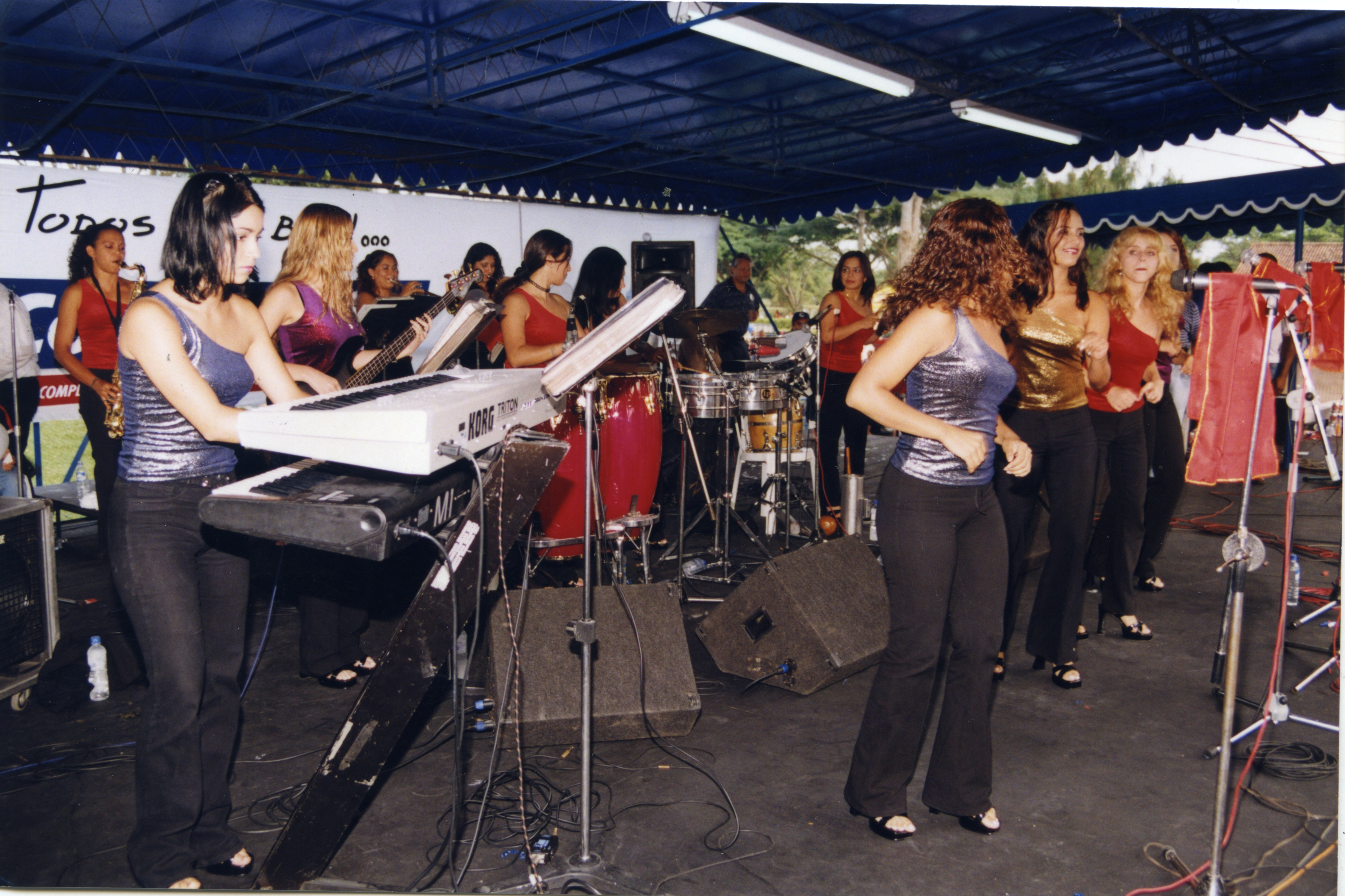 Al reverso de la fotografía se anexa recorte: " La orquesta Canela amenizó la celebración del día del trabajo en el centro recreativo de Pance."