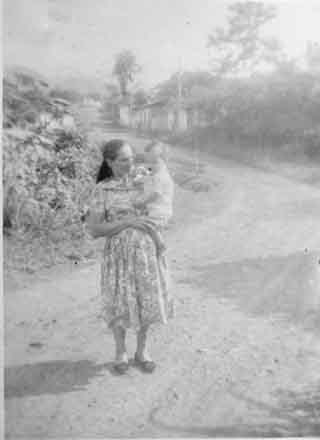 Camino al corregimiento del Piñal. Elisa Muñoz y su hijo. Dagua, 1948.