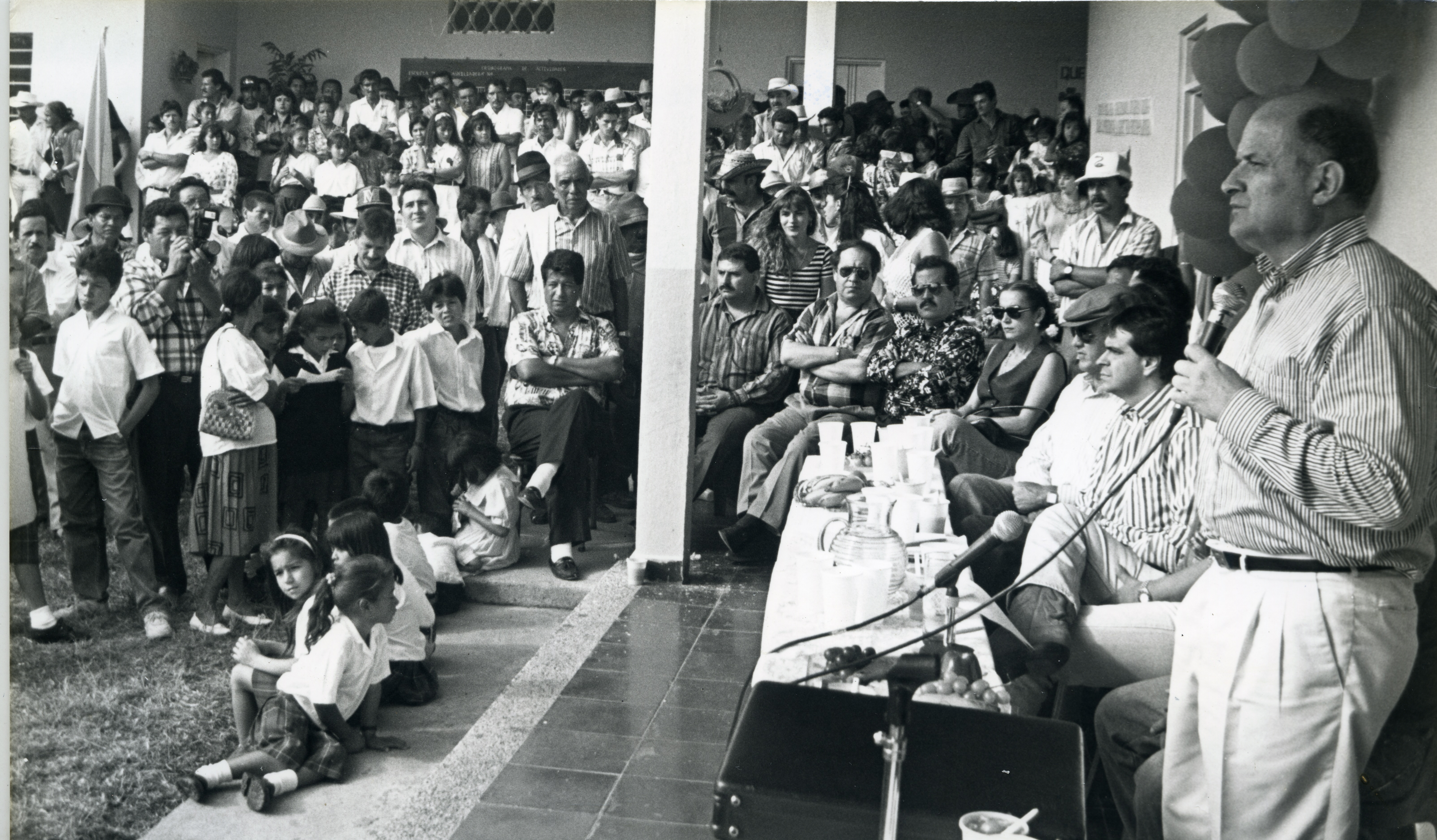 | dc.description.abstract | Gobernador Germán Villegas con su gabinete y la comunidad. Al reverso de la fotografía se anexa recorte:El gobernador del Valle, Germán Villegas afirmó que la pobreza que vive el departamento se debe a la migración de personas del eje cafetero, el pacífico y zonas de violencia.Para combatirlo anunció el mejoramiento de la vivienda, construcción de vías, puestos de salud y escuelas en el área rural para evitar que el campesino migre a la ciudad. En la gráfica el mandatario acompañado de su gabinete dialoga con habitantes de la zona rural de Bolívar | spa |