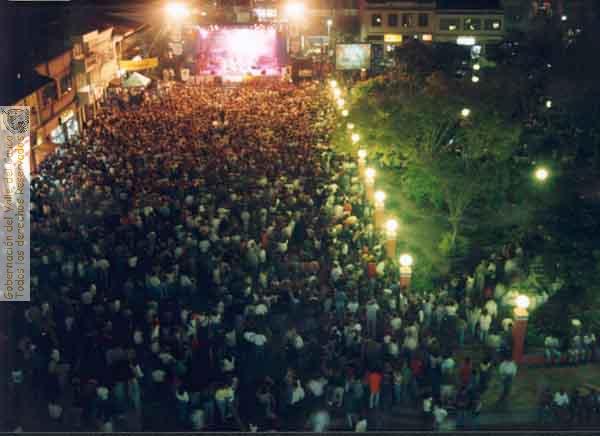 Foto nocturna de la Plaza de La Concordia durante una festividad no identificada. Sevilla. 1998