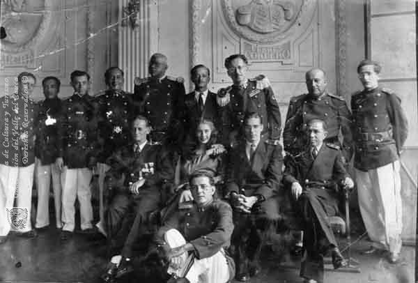 de octubre de 1945. De izquierda a derecha. El Mayor Joaquin Delgado, la señorita Leonor Delgado y los Capitanes Gustavo Velasco y Silas Serna. Guayaquil-Ecuador. C. 1950.