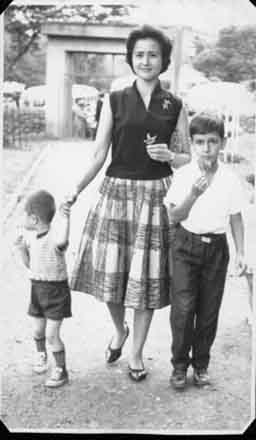 De paseo por el parque del acueducto de San Antonio, Aixa Murillo, su hijo Diego y Mario Castrillón. Santiago de Cali, 1962
