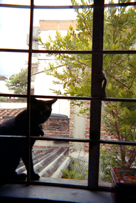 Rocha Ruiz, C. (2005). Gato en en la reja, al fondo paisaje. Santiago de Cali: Biblioteca Departamental Jorge Garces Borrero.