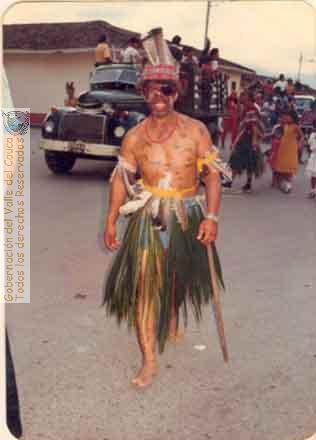 ALCIVIADES ARCINIEGAS (1990). El señor José Gómez disfrazado de indio nativo para las comparsas durante los carnavales decembrinos en Ginebra & 602852. GINEBRA: Biblioteca Departamental Jorge Garces Borrero.
