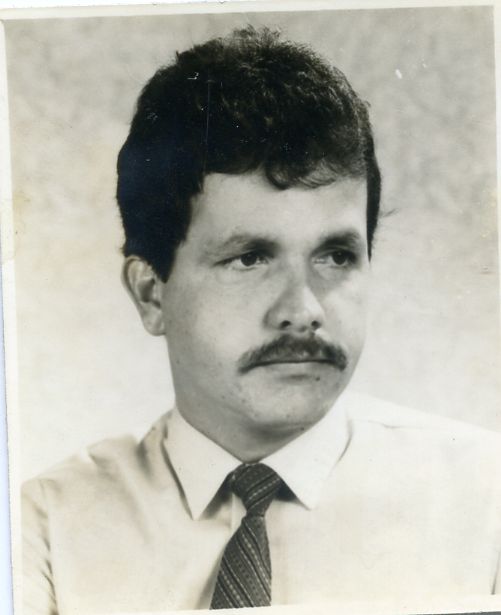 Fotografia de plano medio del concejal Carlos Adolfo Dominguez Escobar, donde luce un traje de saco y corbata, tambien luce un bigoto no muy poblado.