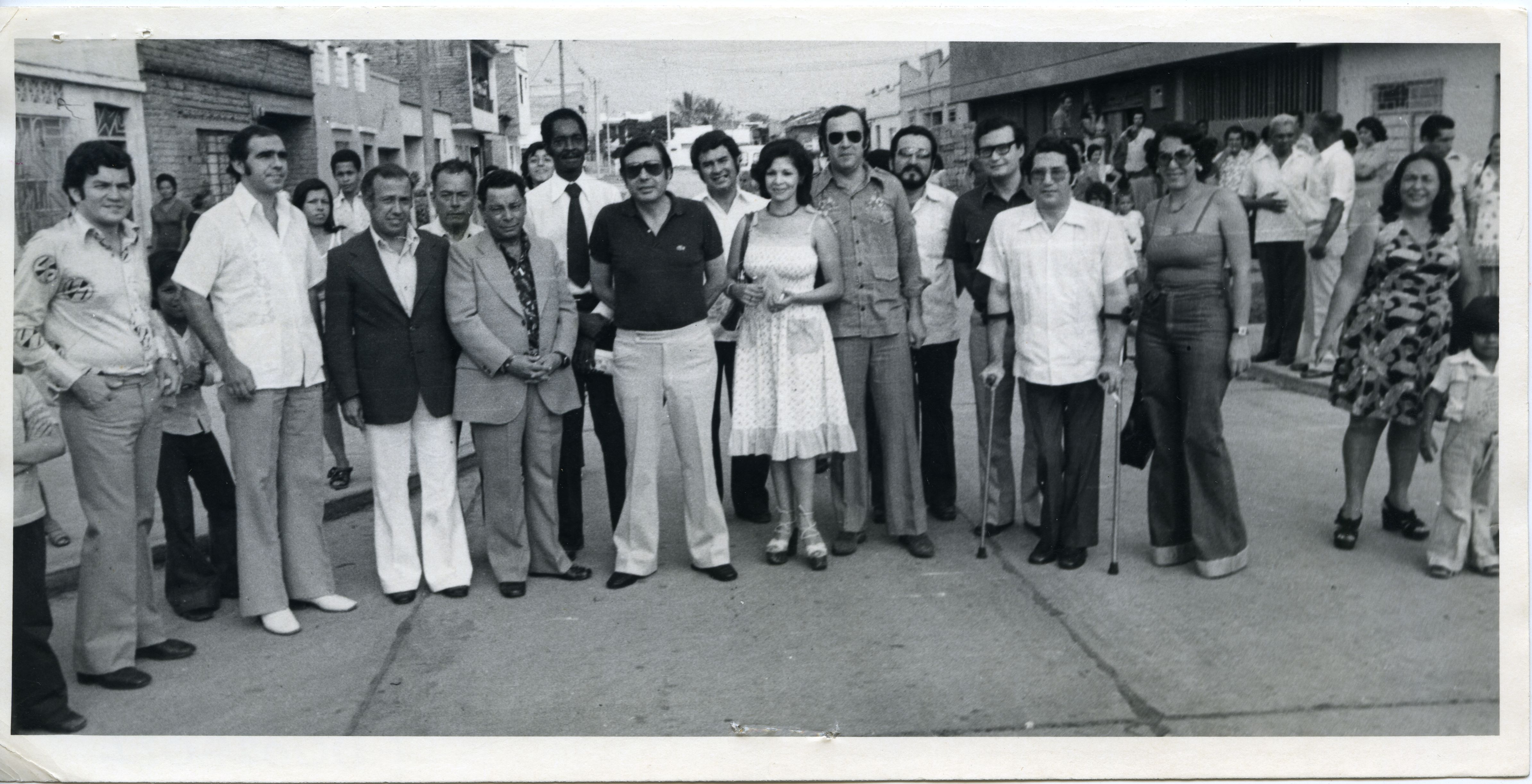 En la gráfica se observa a Ernesto González Caicedo en medio de unos ciudadanos debido a la inauguración de la temporada deportiva de Santiago de Cali
