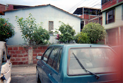 Plano medio. Exterior día. Lateral de vivienda. Sobresalen plantas en franja central, con realce de flores blancas en centro de escena. Carros en franja inferior.