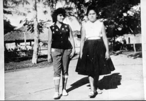 Los pescadores o pantalón a mitad de pierna, hoy día llamados "capri" estilizaban la figura femenina, siendo muy apreciados por las jóvenes de la década de los sesenta. Vijes, María Yepes y Omaira Prado. C. 1960