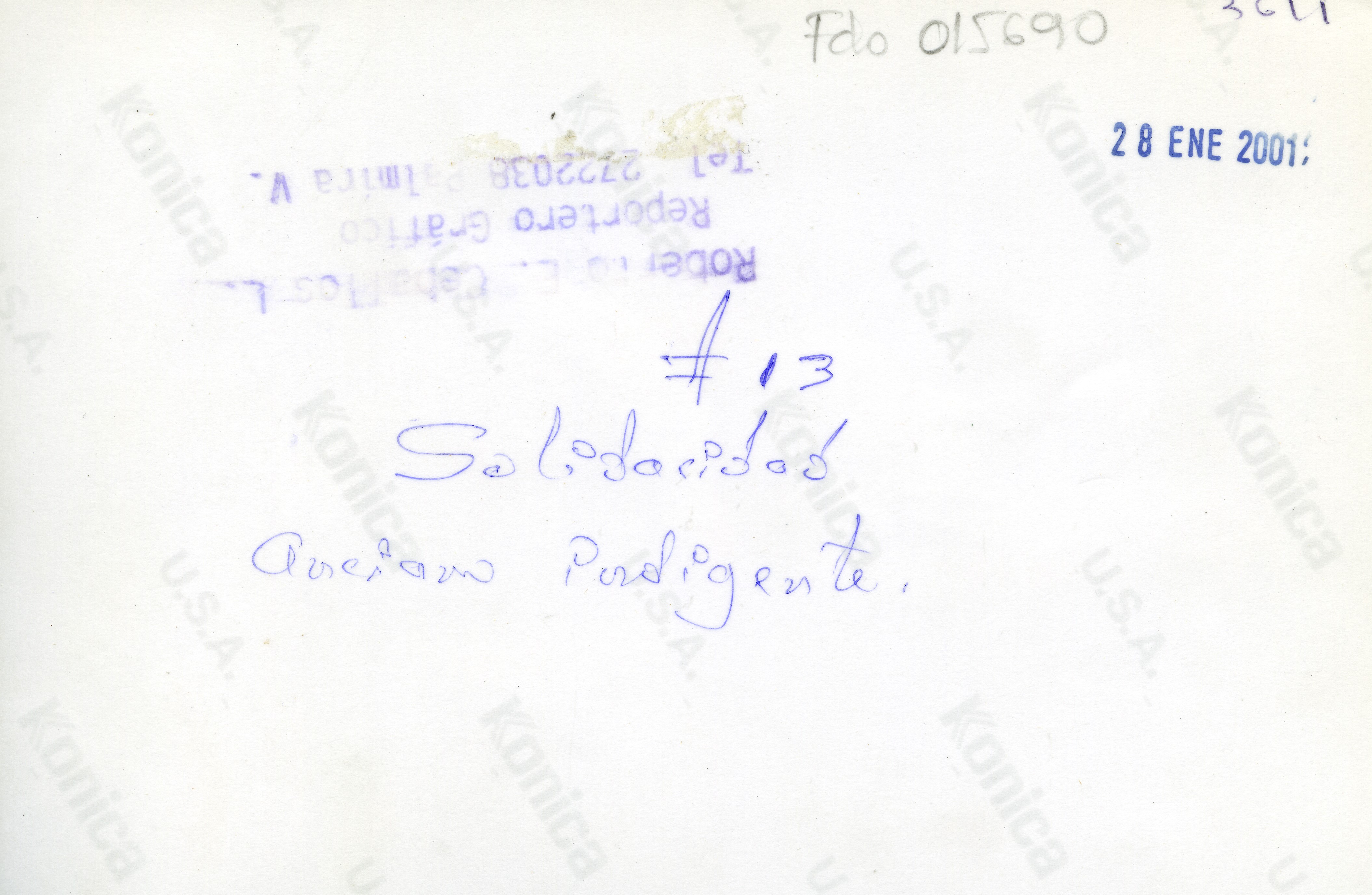 Habitantes de calle en el piso, uno de ellos viste un pantalón y tiene su cabeza recostada en la pierna de otro habitante, que esta completamente vestido. Al reverso dice: ¨Solidaridad anciano indigente.¨