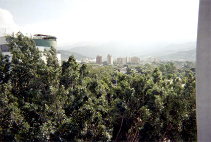 En el bloque inferior vegetación. Al fondo edificaciones. Vista de la ciudad desde el barrio Tequendama. Plano general.