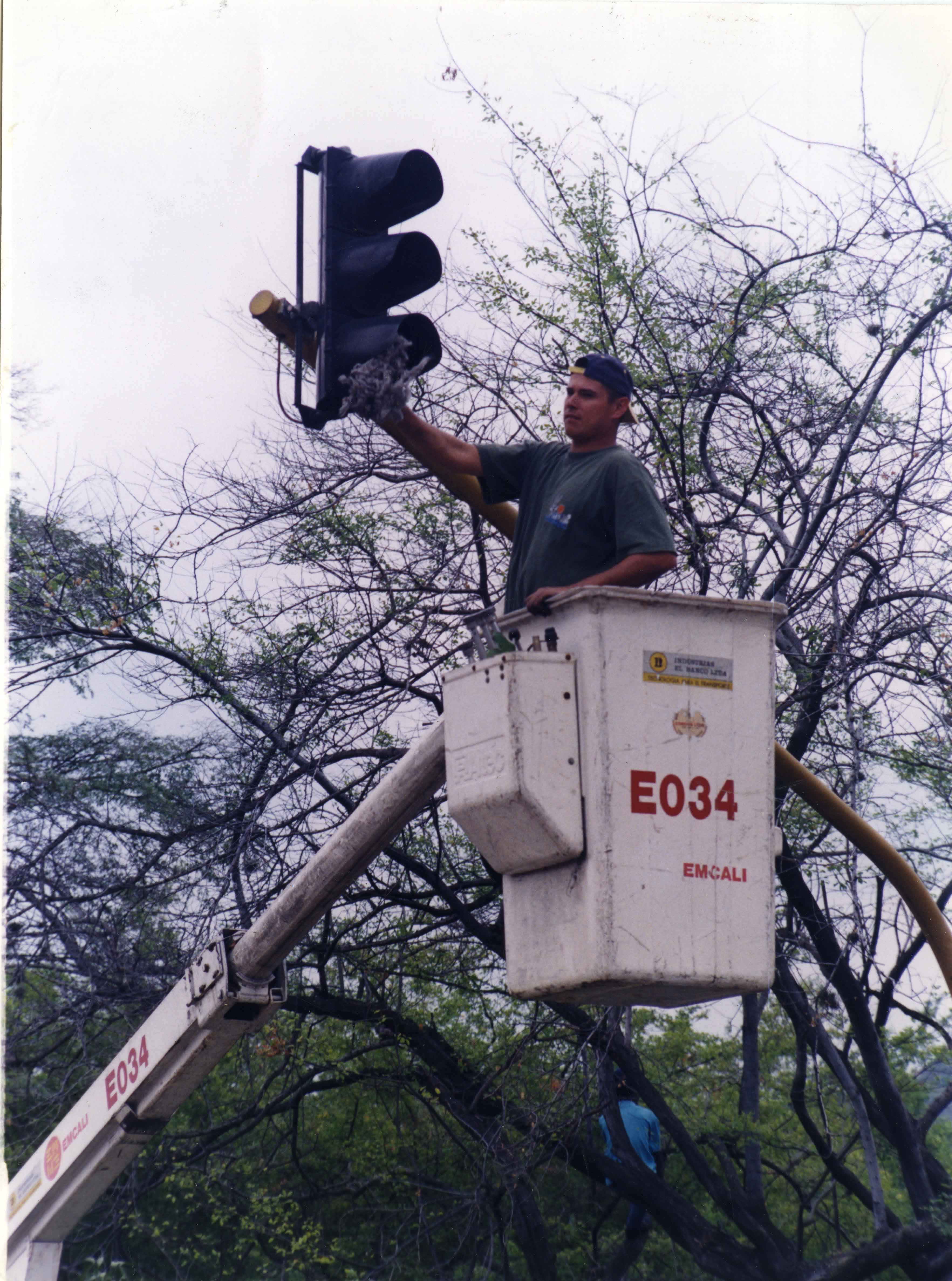 Personal de EMCALI realizando mantenimiento a Semáforo de la Avenida Las Américas de Santiago de Cali >El Archivo del Patrimonio Fotográfico y Fílmico del Valle del Cauca es responsabilidad de la Biblioteca Departamental del Valle Jorge Garcés Borrero, por convenio de cooperación suscrito con la Secretaria del Cultura Departamental, con el fin de aunar esfuerzos para su conservación, preservación y divulgación del Archivo entre la comunidad Vallecaucana, especialmente entre los estudiantes e investigadores que visitan la Biblioteca, propiciando el su uso y consulta permanente. La universidad Icesi es un colaborador en el proceso de difusión, facilitando la tecnología que permite la consulta de las imágenes.