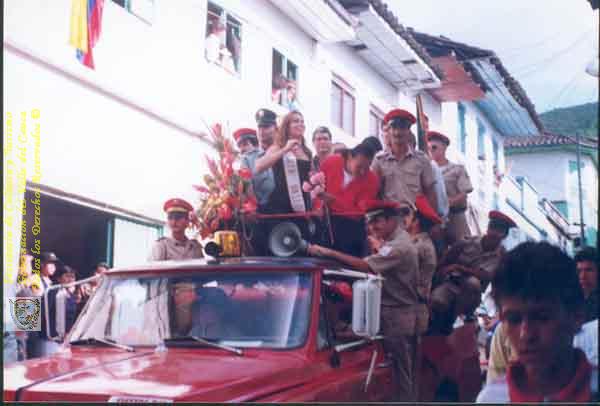 Carolina Valencia, Representante del Valle del Cauca al reinado Nacional de Belleza, visitando su tierra natal. El Águila 1996.