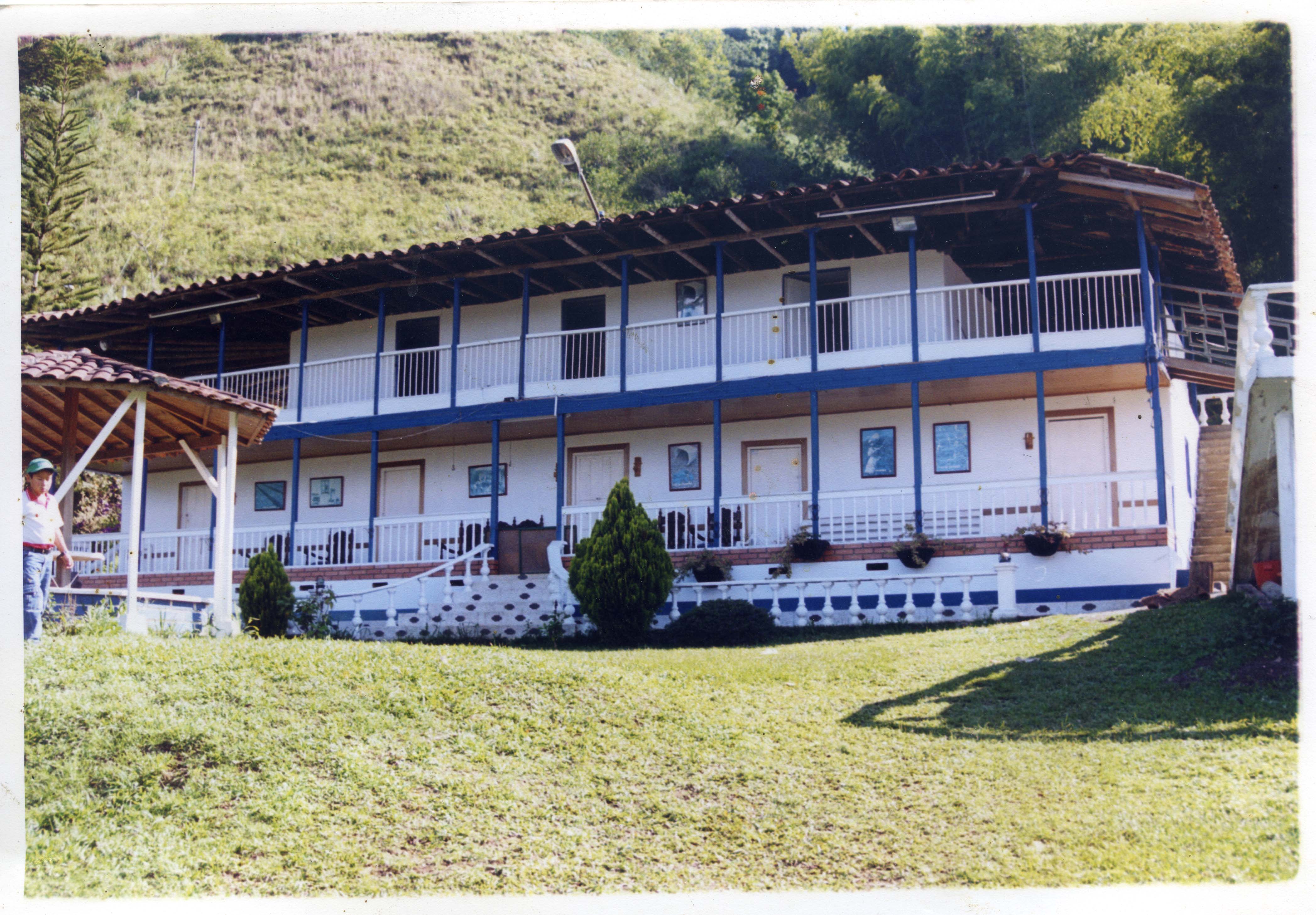 El Águila, Valle del Cauca. Fundado en 1899, por Emelecio Duque, Marcelino Echeverri y los hermanos Bernardo y Natalio Serna. Municipio desde 1950. Economía importante en agricultura, ganadería, caficultura, riqueza natural, etc. Observamos en la imagen, casa cafetera adornada con cuadros. Se aprecia un joven y la montaña