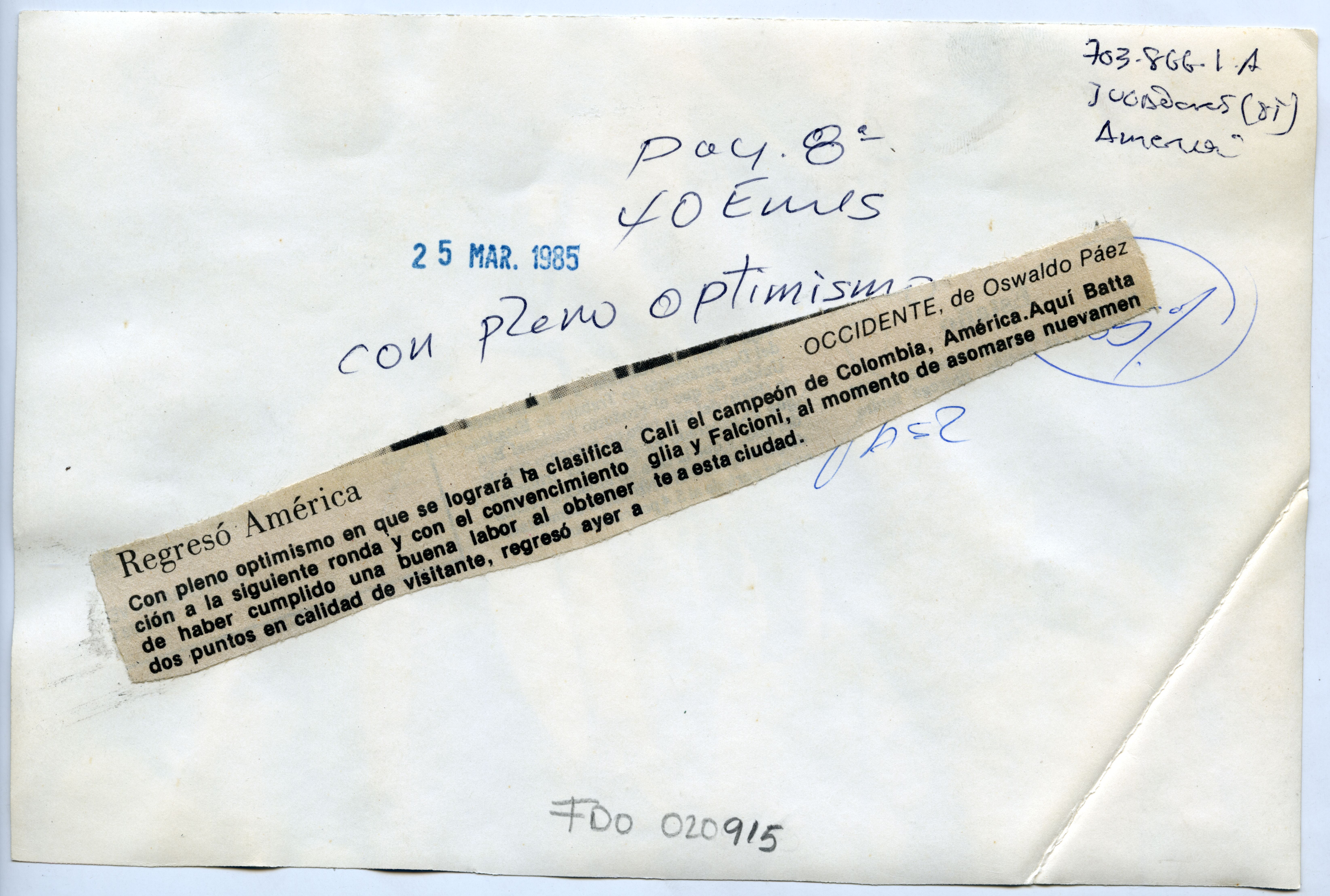 | dc.title | Regresó del equipo América de Cali | spa |