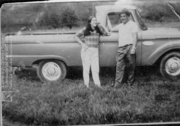 Flor Montoya y Eusebio Montoya, de paseo en la camioneta de la familia. Tuluá, 1965.