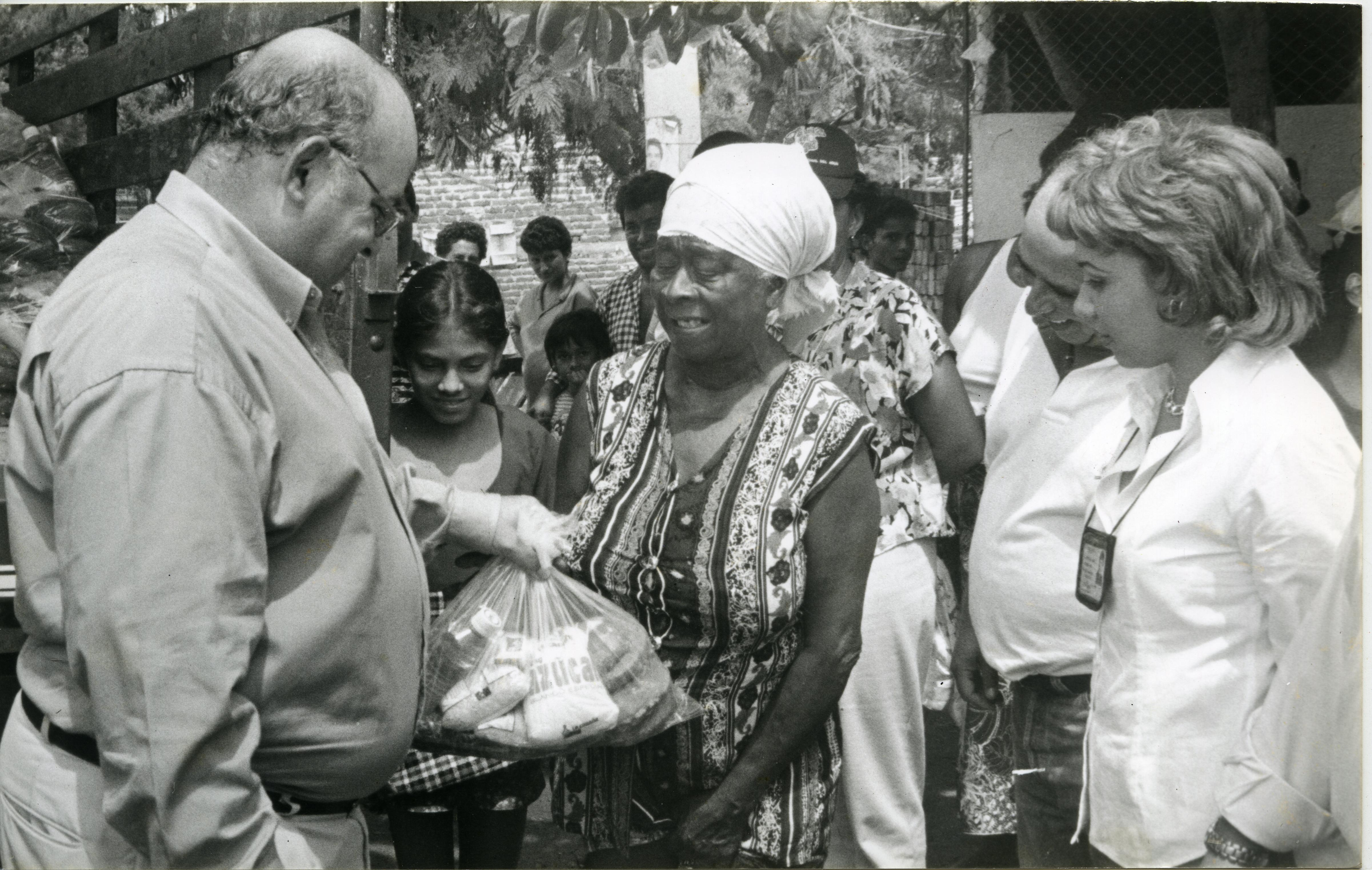 "Reverso ""El gobernador encargado del valle del Cauca, Humberto Alzate Castaño entregó 1500 mercados, al igual número de familias damnificadas por el fenómeno del pacífico, mas conocido como la niña. Las ayudas fueron donadas por los empresarios de chance y con ellas se benefician habitantes de yotoco, Bolívar y Riofrío"". "